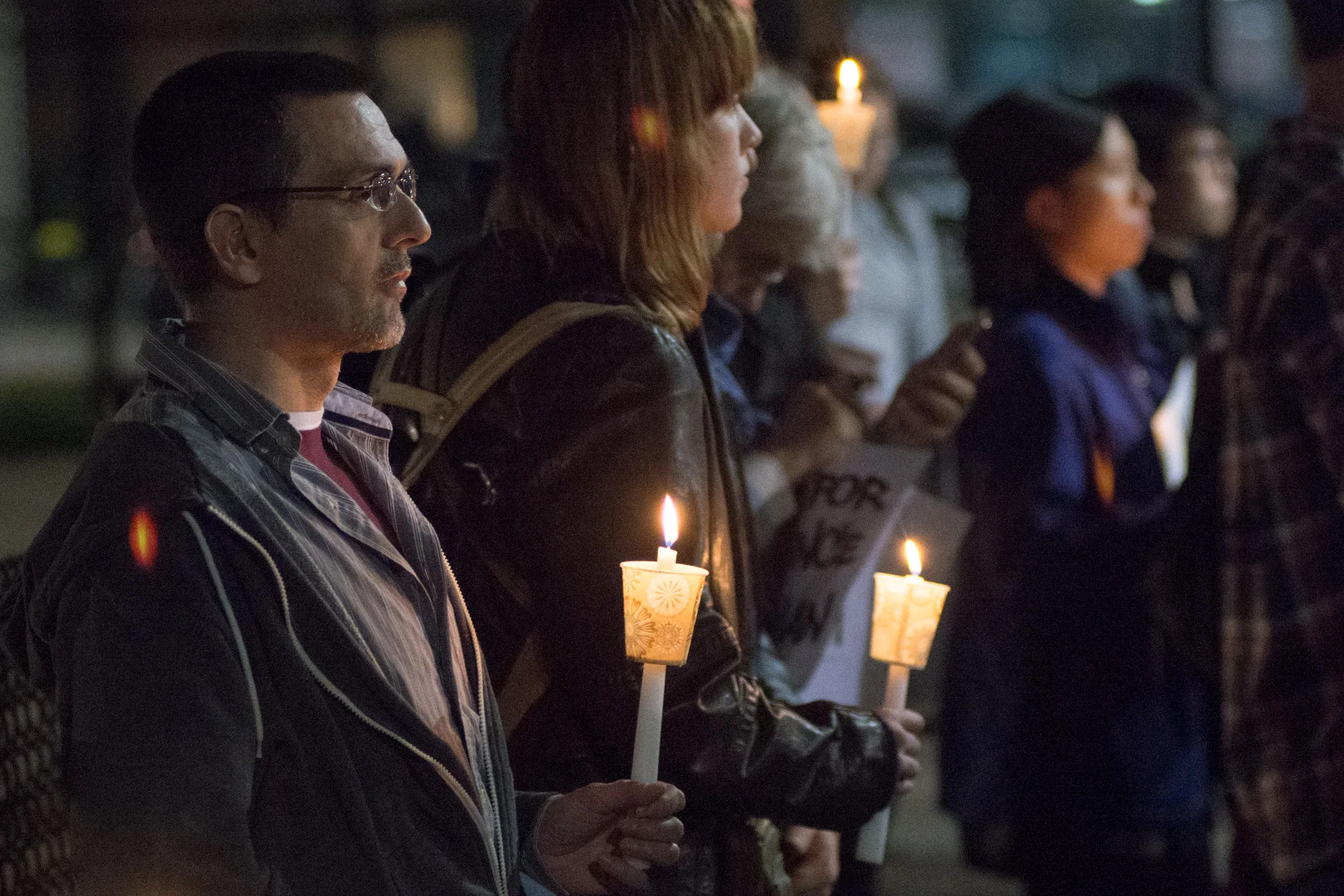 The vigil was organized by Mass Action Against Policy Brutality and attended by around 100 people.